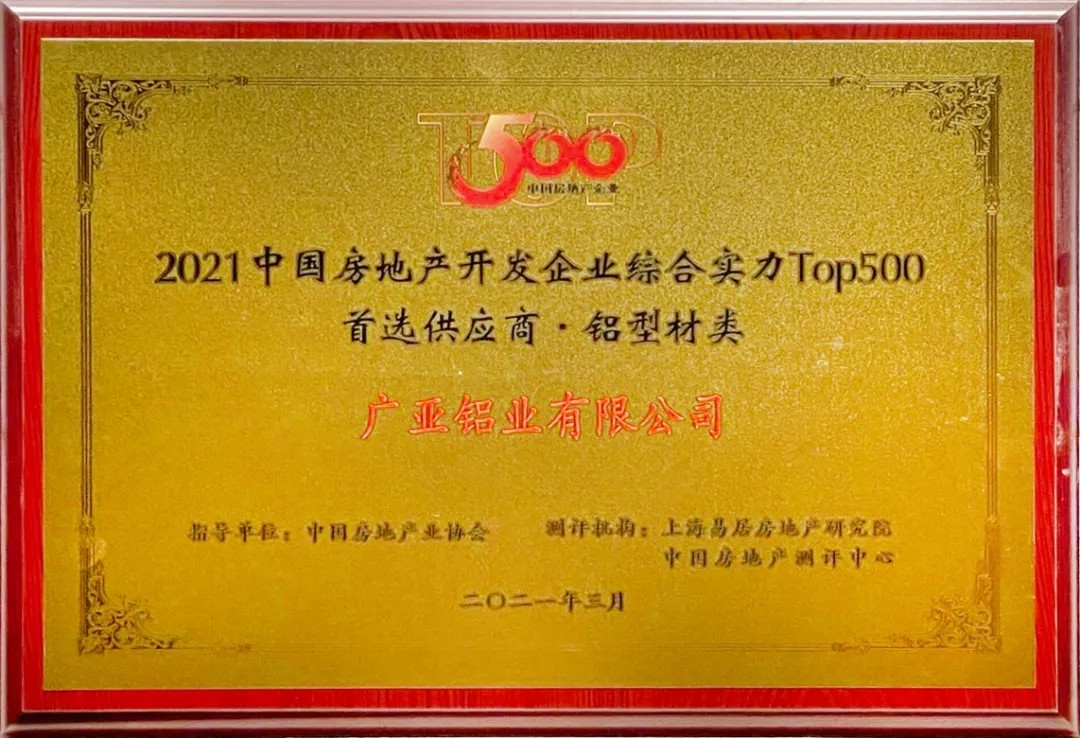 廣亞鋁業(yè)再度入圍“中國房地產(chǎn)TOP500首選供應(yīng)商品牌”,榮晉前三甲!
