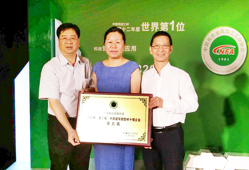 廣亞鋁業(yè)榮獲中國建筑鋁型材五強