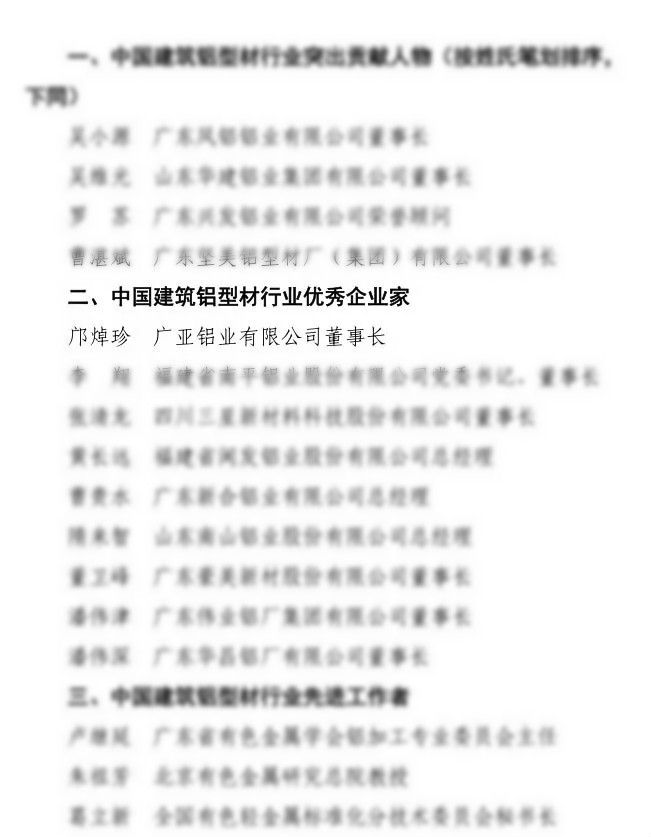“中國(guó)建筑鋁型材行業(yè)優(yōu)秀企業(yè)家”榮譽(yù)稱號(hào)