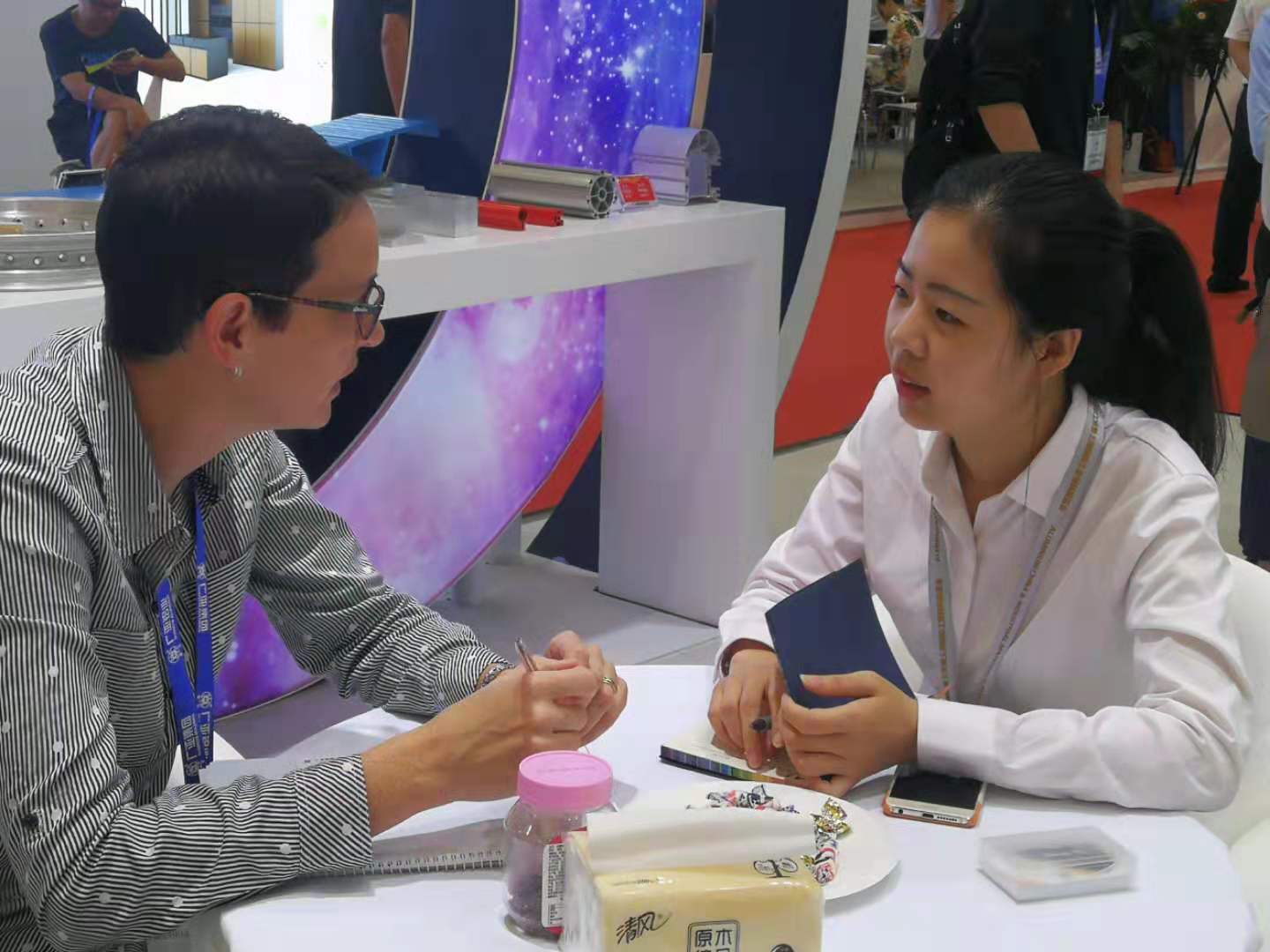 7月驕陽似火,為讓客戶擁有更好的觀展體驗,前來觀展的客戶只要關(guān)注廣亞鋁業(yè)的微信公眾號,即可免費領(lǐng)取高端飲品,感受到品牌的貼心服務。