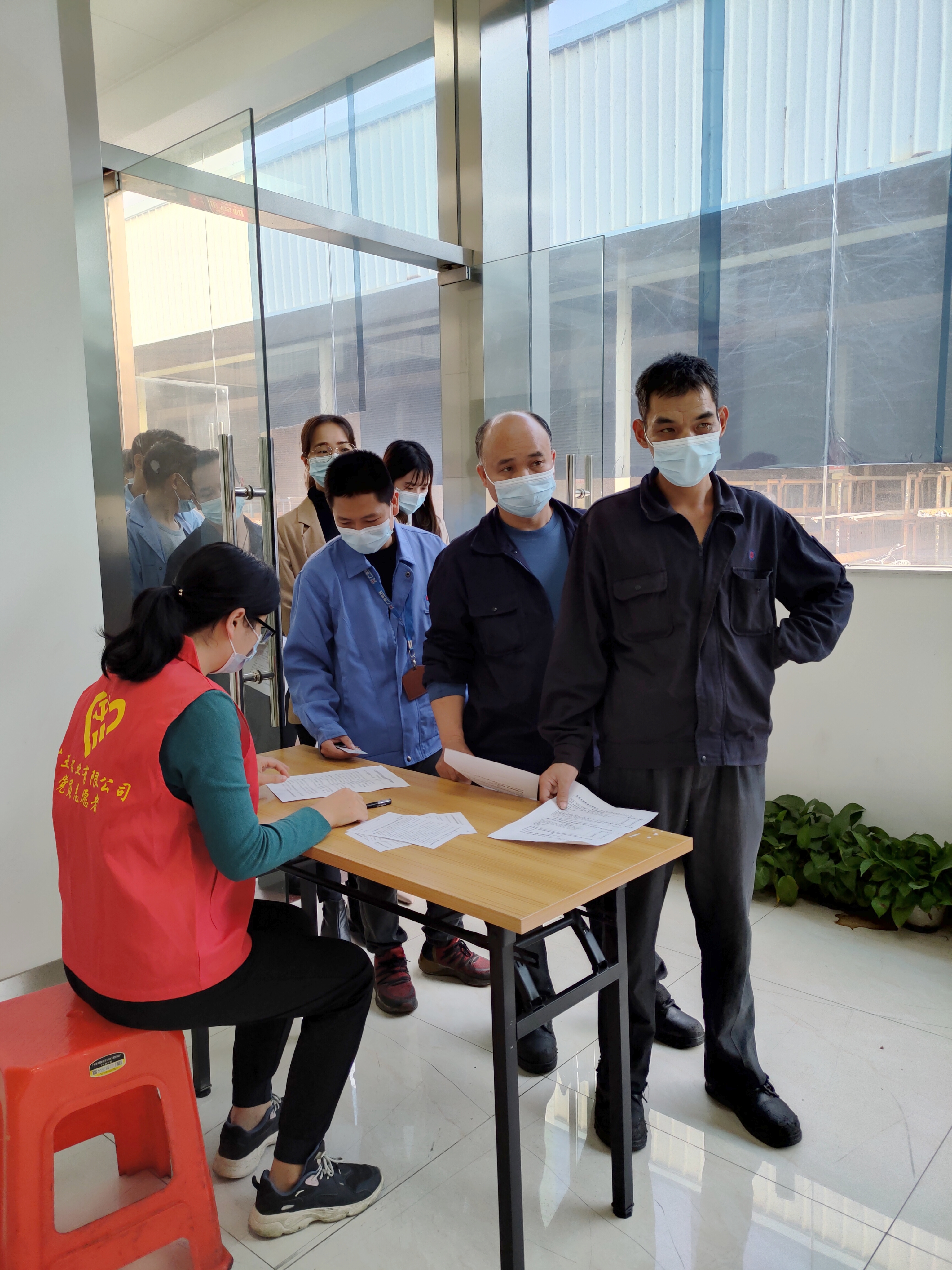 接種現(xiàn)場,廣亞職工全程佩戴口罩,按照規(guī)劃路線,有序等候;在醫(yī)務(wù)人員的指引下,持身份證逐一登記,按要求測量體溫、了解接種注意事項并進(jìn)行健康申報,