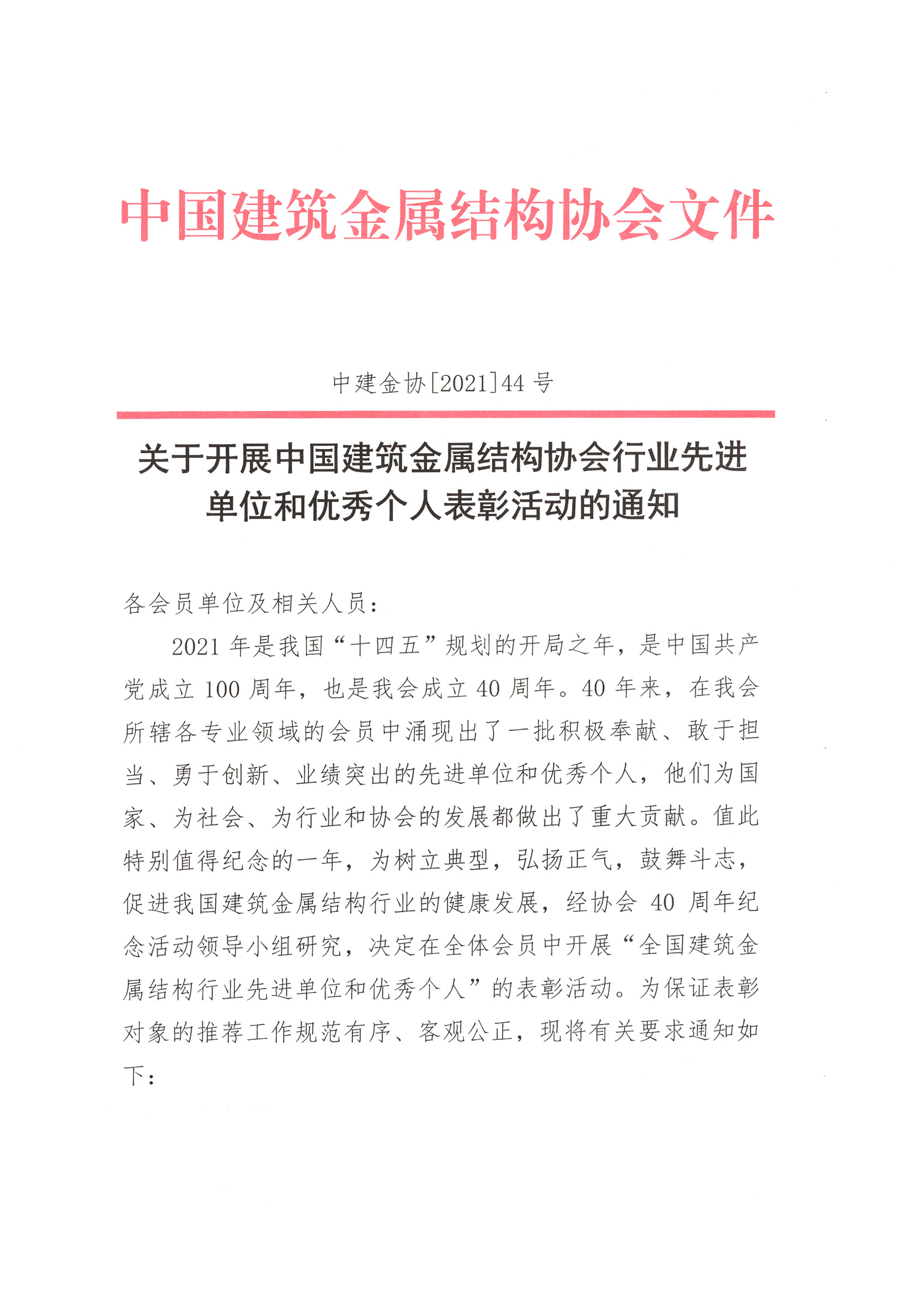 2021年是中國(guó)共產(chǎn)黨建黨100周年,是“十四五規(guī)劃”開(kāi)局之年,也是中國(guó)建筑金屬結(jié)構(gòu)協(xié)會(huì)(以下簡(jiǎn)稱“協(xié)會(huì)”)成立40周年。作為我國(guó)建筑金屬結(jié)構(gòu)領(lǐng)域的唯一社團(tuán)組織,