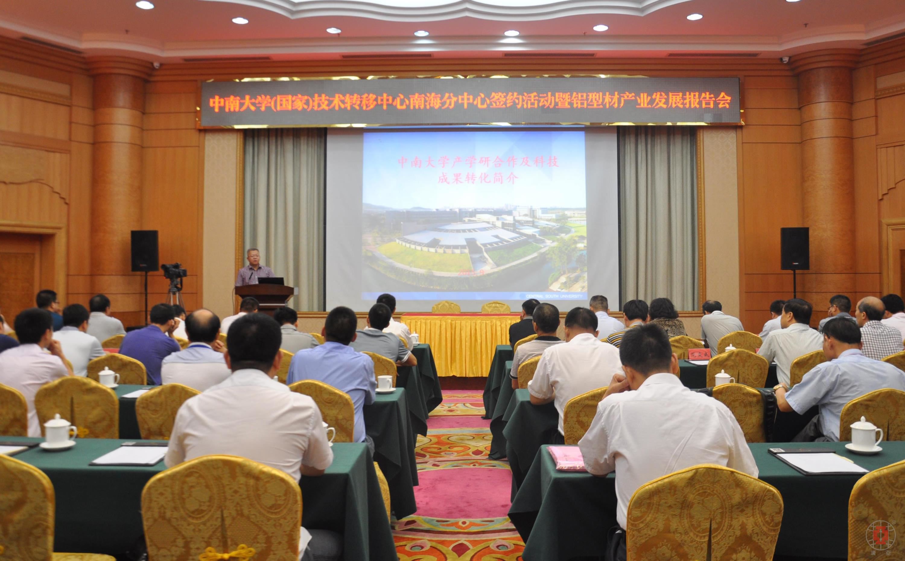 為推動南海鋁型材產(chǎn)業(yè)創(chuàng)新轉(zhuǎn)型,9月7日上午,中南大學(國家)技術(shù)轉(zhuǎn)移中心南海分中心簽約活動暨鋁型材產(chǎn)業(yè)發(fā)展報告會在南海迎賓館隆重舉行,南海區(qū)區(qū)委常委、副區(qū)長李曉佳,副區(qū)長劉銘恩,中南大學(國家)技術(shù)轉(zhuǎn)移中心主任李昌友以及材料科學與工程學院院長李周等領(lǐng)導和專家,南海區(qū)發(fā)改、經(jīng)貿(mào)、科技、教育、人才辦、人社局、工商聯(lián)、各鎮(zhèn)街分管經(jīng)濟及經(jīng)促局負責人,南海區(qū)鋁型材協(xié)會和模具協(xié)會會員企業(yè)負責人,以及南海總商會和各行業(yè)協(xié)會會長等出席了大會。