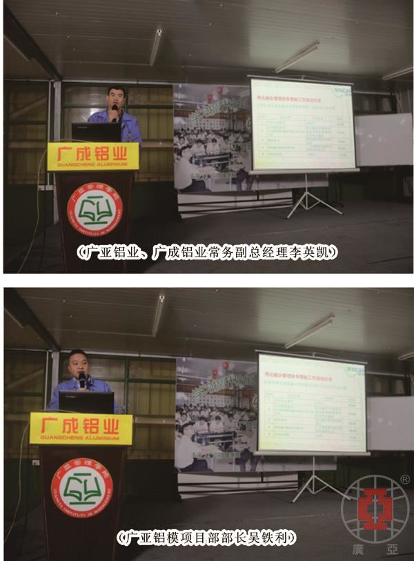 自中共十六大提出“以信息化帶動工業(yè)化,以工業(yè)化促進信息化”以來,“兩化融合”概念在社會發(fā)展中不斷被賦予新解讀,今天,兩化融合管理體系已成為企業(yè)轉(zhuǎn)型升級的重要抓手和戰(zhàn)略落地的體系方法。為更好地適應(yīng)時代發(fā)展,穩(wěn)固企業(yè)根基,12月4日上午,兩化融合管理體系貫標(biāo)工作啟動大會在廣成鋁業(yè)隆重召開,廣亞鋁業(yè)、廣成鋁業(yè)常務(wù)副總經(jīng)理李英凱,廣東惠能節(jié)能服務(wù)有限公司總經(jīng)理陳文甸、咨詢師王標(biāo),廣亞鋁業(yè)、廣成鋁業(yè)、廣亞鋁模各職能部門主管、體系內(nèi)審員等30余人出席了大會。