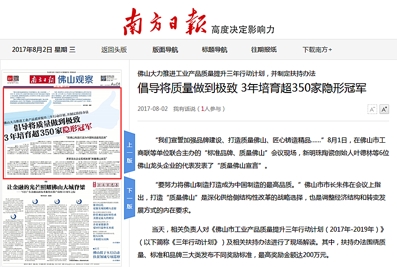 素以低調(diào)務實著稱的南海企業(yè),將工匠精神的執(zhí)著注入實體經(jīng)濟的肌體中,催生出了大批“隱形冠軍”。這些企業(yè),有如璀璨的珍珠在南海這塊制造高地上星羅棋布,是南海由制造高地向品牌強地吹響集結(jié)號的關(guān)鍵力量。