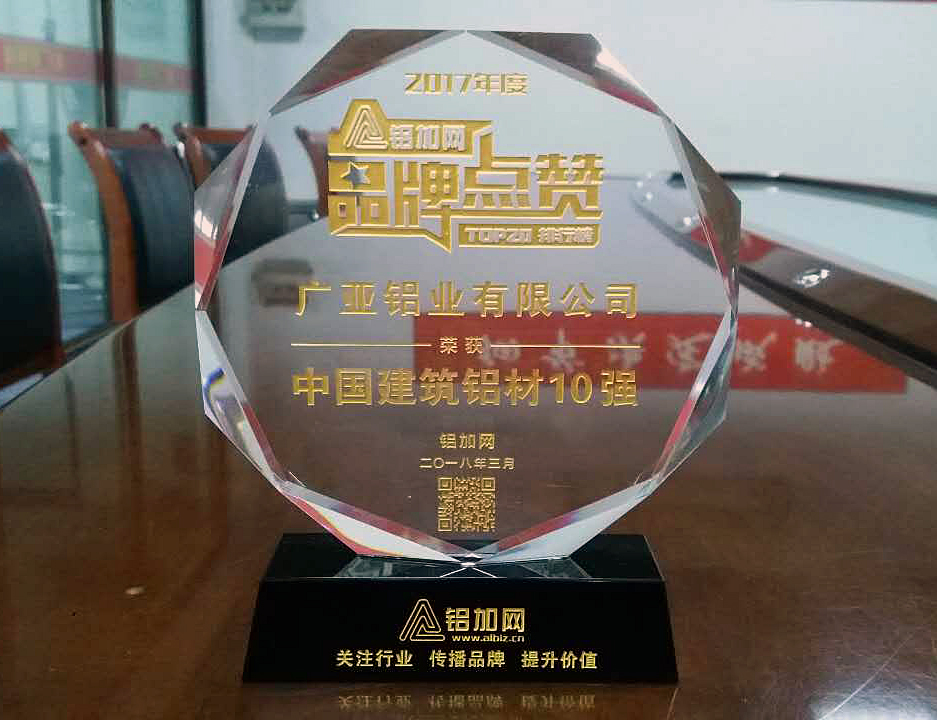 中國(guó)建筑鋁材10強(qiáng)獎(jiǎng)牌